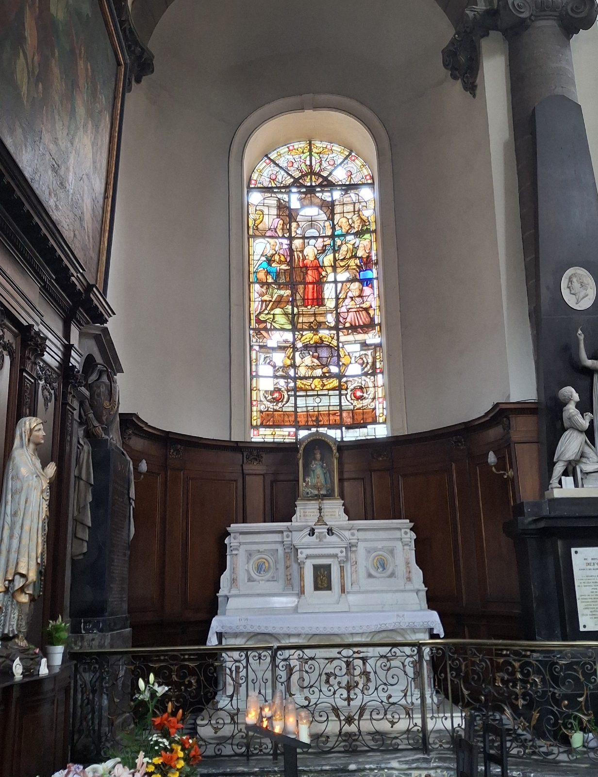 We then headed to Douai and visited a church, and then climbed the tiny spiral 139 stairs of the belfry, saw the bell ringing keyboard (not its real name) and came down. Congratulations to those of us with dodgy knees who completed the journey.